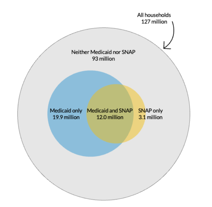 It is currently estimated that 12 million households or roughly 30 million people are enrolled in both SNAP and Medicaid programs.